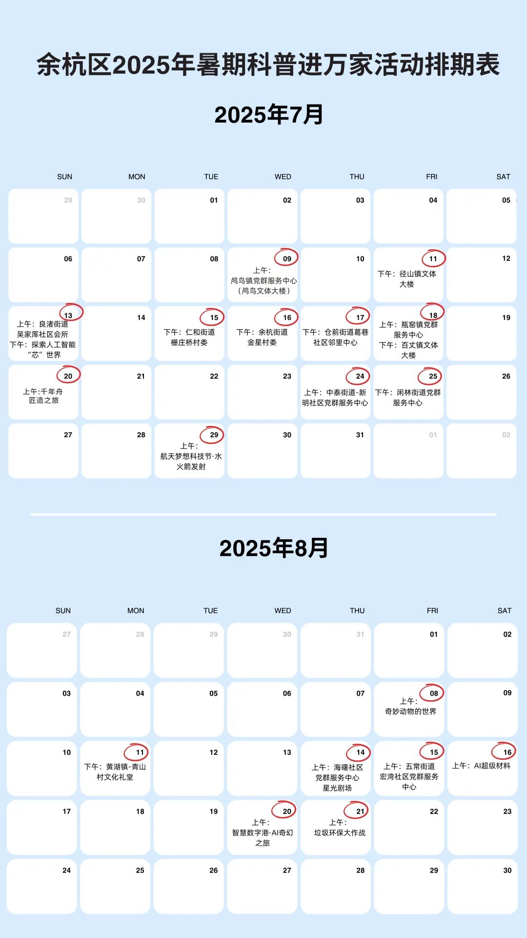 右滑动查看更多图片这个夏天,“科普进万家”热力不减,精彩仍在继续!更多奇思妙想、更多沉浸式体验、更多属于孩子们的科技初体验,等你来解锁!请继续锁定【余杭科协】、【看余杭-科普天地】,一起用科技点亮童年的想象力,让梦想从这里启程!