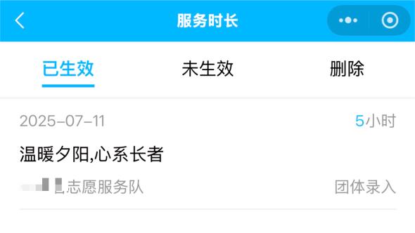 负责人称:“5小时起充,50小时以上有优惠。”记者以40元下单“5小时关爱老人”项目,提供姓名与志愿者编号仅2分钟后,账号中便新增1条5小时的“温暖夕阳,心系长者”服务记录。然而,有学生家长告诉记者,真正的志愿服务认证,从学生参与活动到后台显示志愿服务时长,最快也要1~2小时,“有时候(活动)第二天才能从后台看到服务时长”。