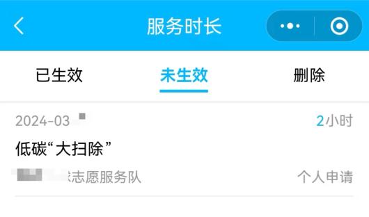 学生志愿服务时长未生效截图。受访者供图