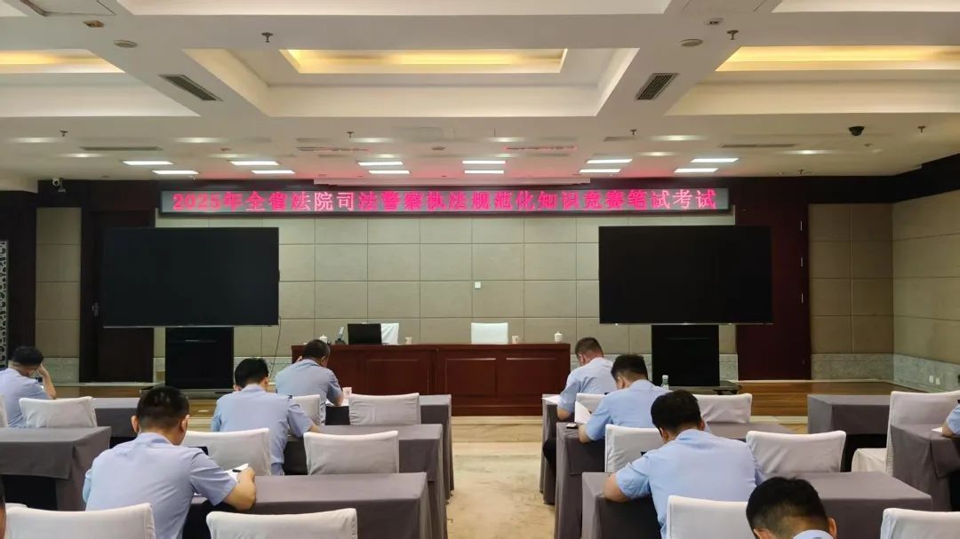 此次知识竞赛初赛和决赛不下发题库,重点考察司法警察对《人民法院司法警察刑事审判警务保障工作规则》《人民法院司法警察安全检查规则》《人民法院司法警察预防和处置突发事件规则》《人民法院司法警察执法细则》《最高人民法院关于司法警察依法履行职权的规定》等执法核心内容的掌握和运用。初赛笔试打破了“指定参赛、突击备考”的传统模式,采用“全员普学、随机抽考”的笔试考试机制,促使每名司法警察都主动自觉进行学习,人人都成为执法规范化知识竞赛活动的受益者。竞赛前一周,省法院司法警察总队和各中院司法警察支队视频连线,按照各中院司法警察支队领导、一般干警各1名,各基层法院司法警察大队领导、一般干警各1名的参考要求,公开透明随机抽签确定了支大队领导72名、一般干警89名的初赛笔试考试人员名单,并于7月17日上午,在省法院集中组织了执法规范化知识竞赛笔试考试。