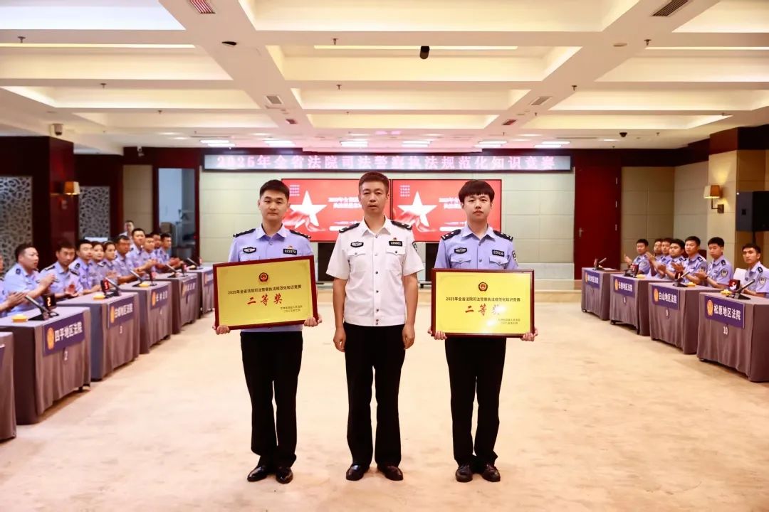 法条在心间,规范践于行。7月17日,2025年全省法院司法警察执法规范化知识竞赛在吉林长春落下帷幕。9个地区中院和3个直属中院参赛人员通过初赛笔试随机抽考、决赛现场答题,展开了一场聚焦主责主业、直击执法“怎么办”的业务能力大比拼,进一步提升了司法警察的业务能力和执法规范化水平。省法院副院长李永秋出席执法规范化知识竞赛活动,并为获奖单位颁奖。