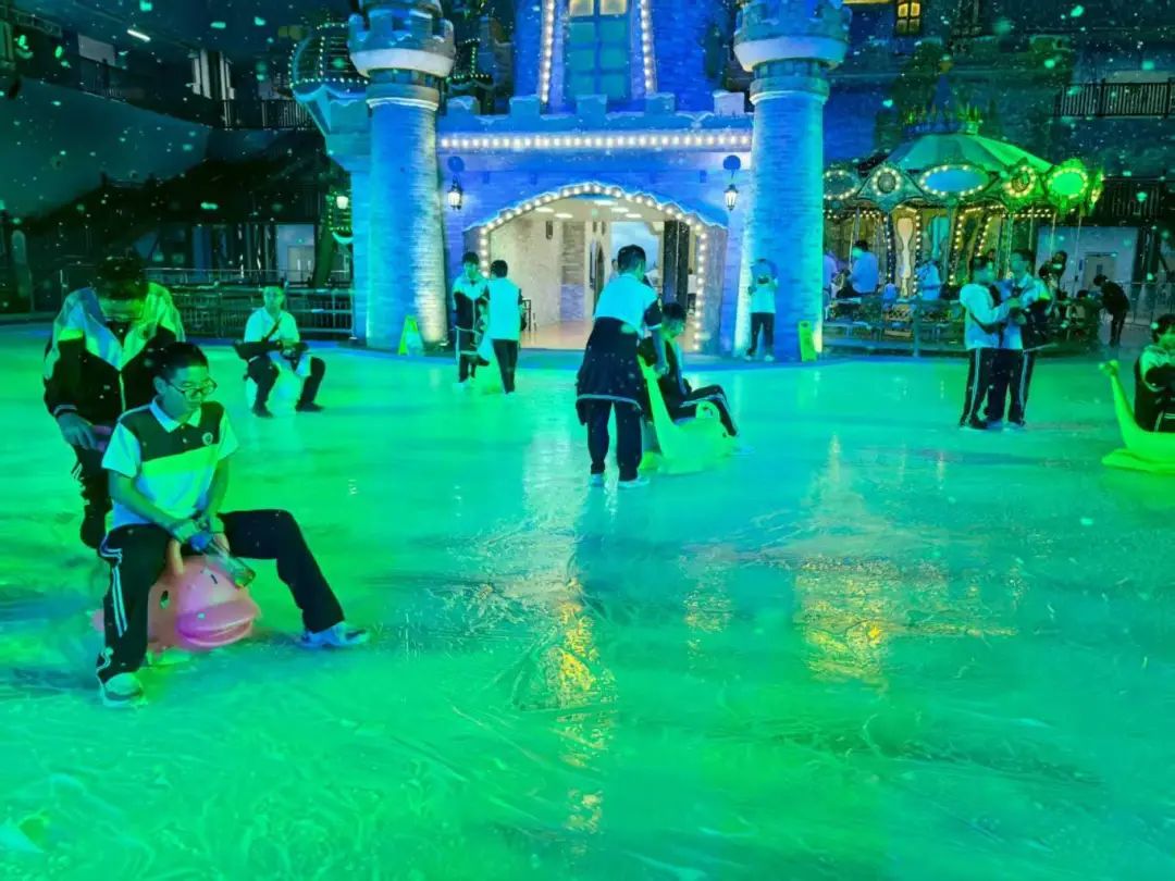 在这里,同学们体验了丰富多彩的冰上活动,滑冰、冰滑梯、冰迷宫、旋转木马、碰碰车等,在欣赏冰雪的同时,感受冰上运动的刺激与快乐。