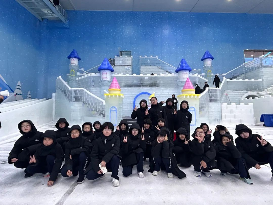 踏入冰雪世界,零下的低温裹挟着纯净的雪意扑面而来,洁白无垠的雪道、精致梦幻的冰雕,瞬间将大家带入一个银装素裹的童话天地,同学们的探索热情也被瞬间点燃。