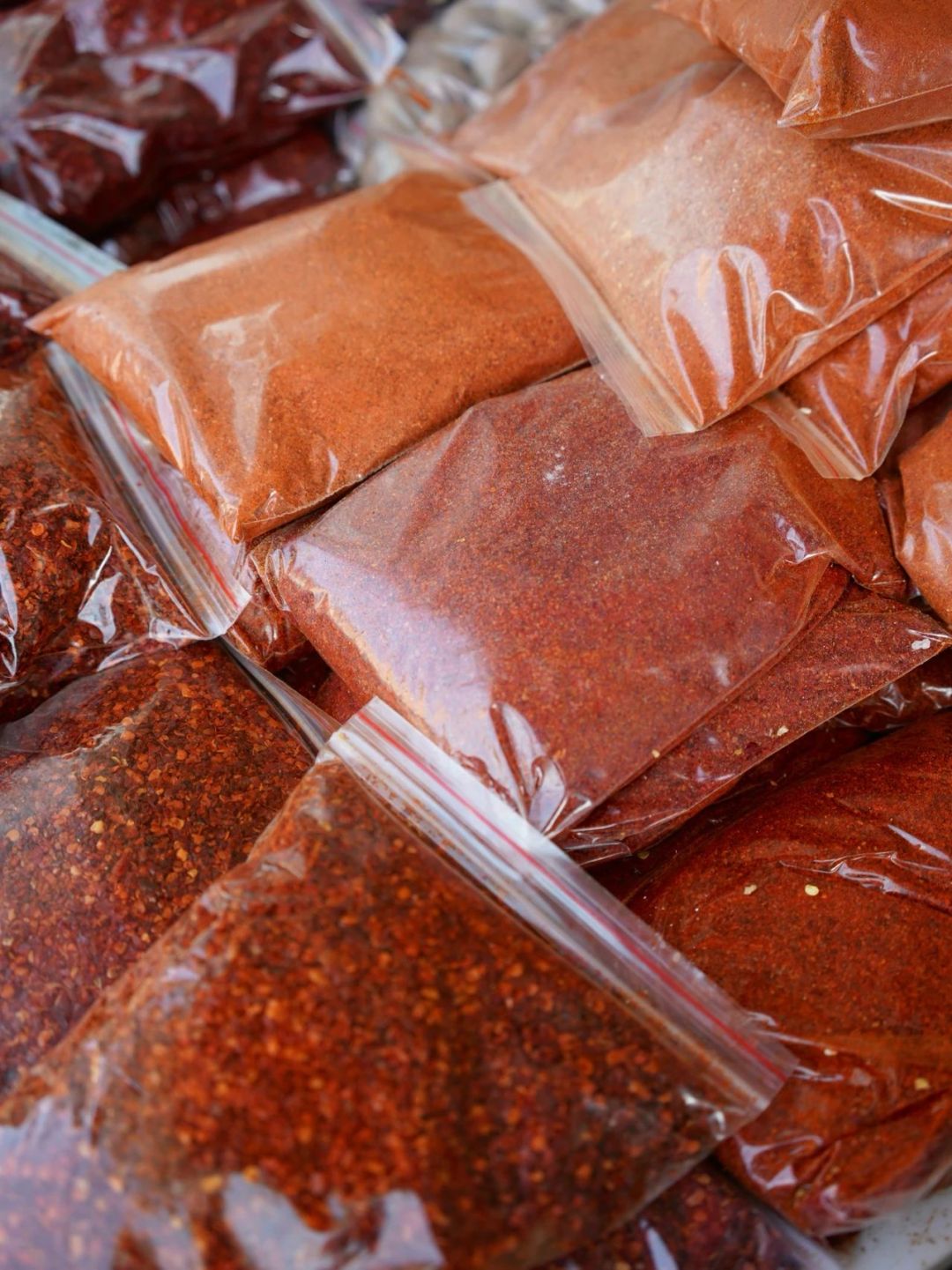 不同的辣椒,也有不同的角色。安集海辣皮子,适合经热油煸炒释放焦糖香,成就了大盘鸡的红亮汤底;焉耆椒磨粉后制成米粉酱,也是新疆炒米粉“辣中透鲜”的秘密~