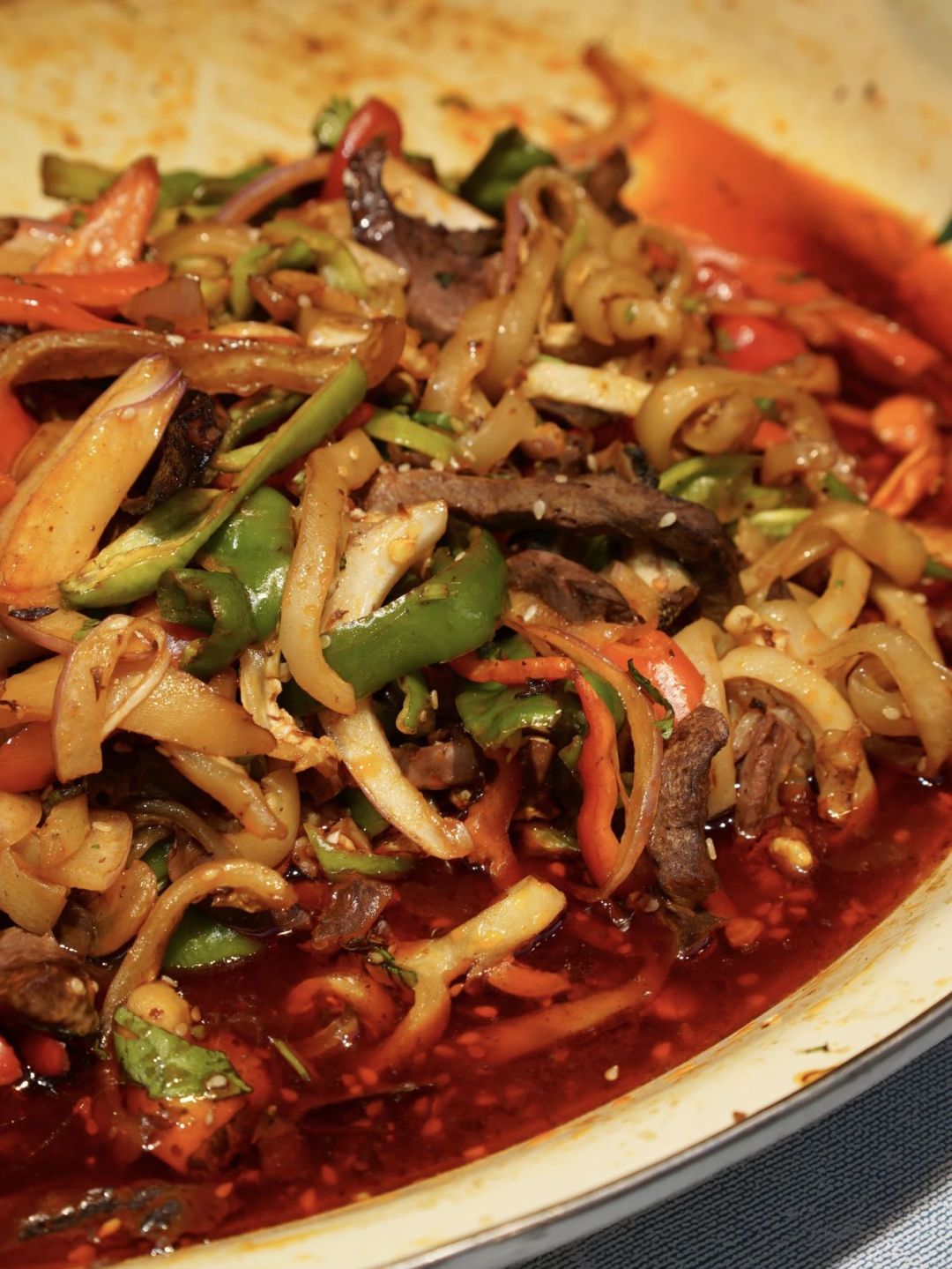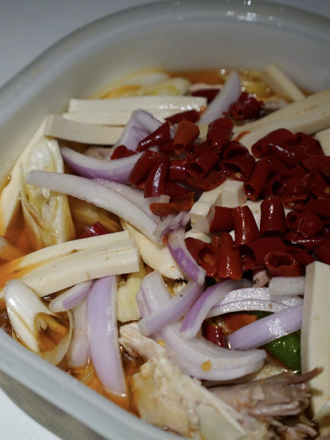 比如在看似平平无奇的“皮辣红”凉菜里,皮牙子(洋葱)、辣椒就是主角,而在汤汁里还可能混着白胡椒。