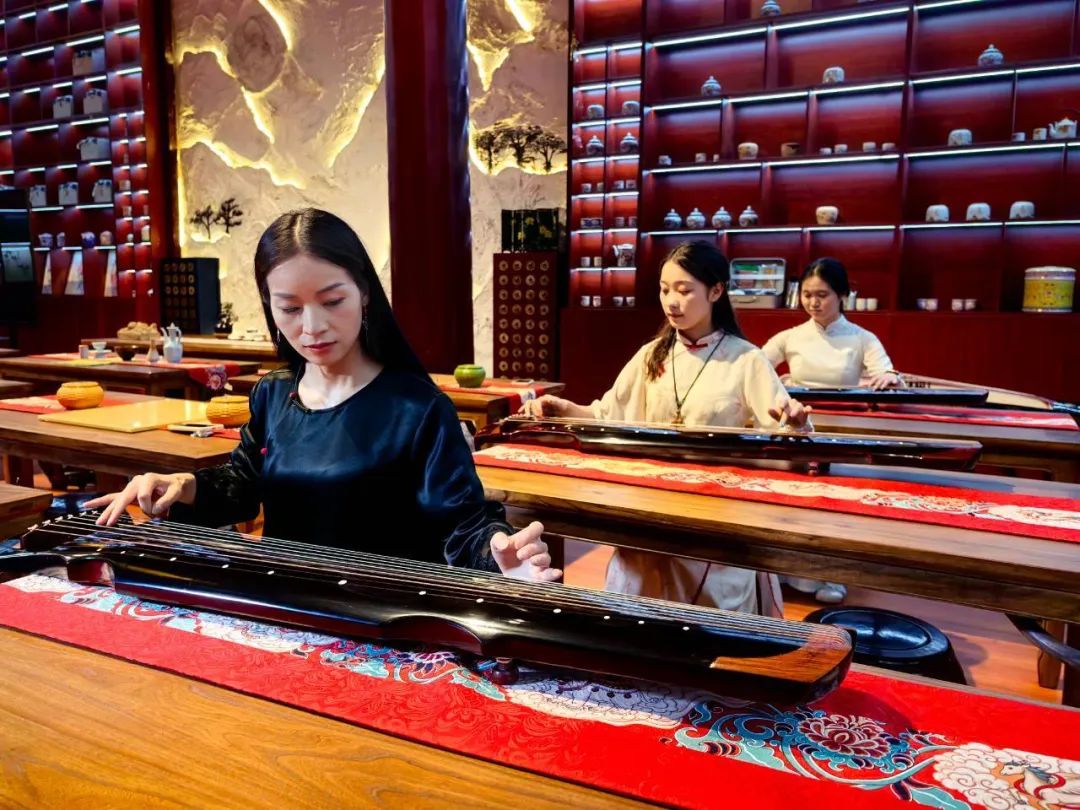 漫步会馆,传统文化的沉浸式体验随处可见:身着汉服的姑娘正在天井里演示茶道;回廊下,几位年轻小伙围着棋盘对弈;古戏台上,悠扬的古筝声伴着舞蹈演员的水袖翩跹。为丰富游客体验,陕西会馆精心打造了系列传统文化体验项目。据陕西会馆运营负责人李兴灿介绍,如今,陕西会馆以全新的姿态进行包装打造,更多地将中华优秀传统文化融入这座有着近300年历史的老院子中。其展示内容丰富多样,涵盖古琴、古筝、围棋、象棋、书法、绘画、香道、插花,还有投壶、射箭等项目。此外,我们依托现有的古戏台,每天都会在台上编排一场经典的传统歌舞表演。让这座老院子真正“活”起来、“火”起来。