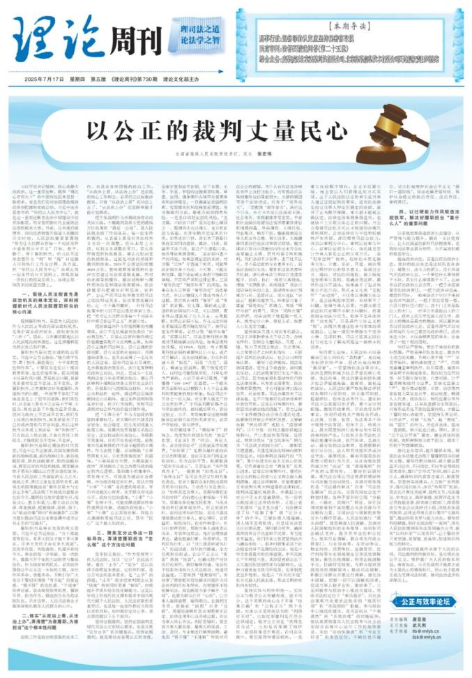 《人民法院报》刊发云南省高级人民法院党组书记、院长张宏伟署名文章:以公正的裁判丈量民心