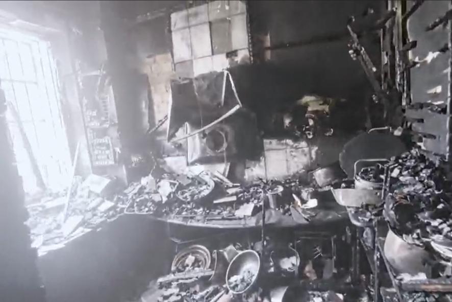 灶台、油烟机、橱柜被完全烧毁