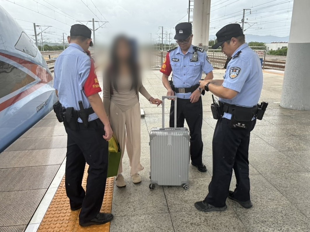 时间回到7 月 14 日,当天19时许一名 14 岁女孩小欢(化名)因父母不同意其外出游玩,赌气乘坐C6958 次列车从湛江西站独自前往珠海。当家人紧急联系铁路警方时,距离列车抵达阳江站仅剩 10 分钟。随后,阳江站派出所民警立即赶赴 3 号站台,迅速与列车乘警完成 “手递手” 交接,并将女孩小欢送至派出所,等待家属前来接回。面对民警询问,小欢满是委屈与无助。“暑假想和朋友一起出去玩的心情我们能理解,但是你一个人独自出行,且家人不知情,他们该有多担心啊……”在民警的温情劝导下,小欢情绪逐渐平复。当晚23时许,驱车数小时赶来的父亲与姐姐向民警连连致谢,并表示日后将注意与小欢的沟通方式。