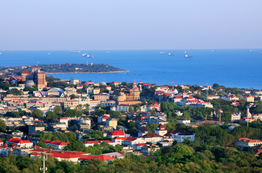 红瓦绿树,碧海蓝天,