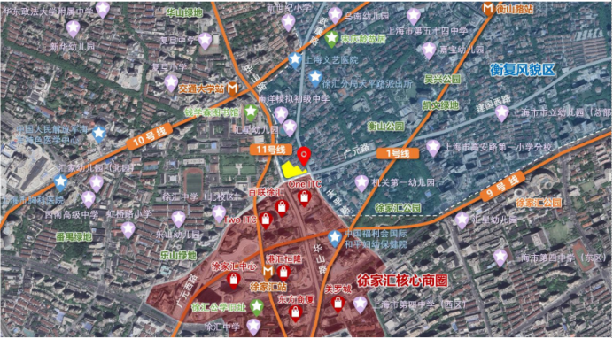 该区域“出则繁华,入则静谧”。地块处于衡复历史文化风貌区与大徐家汇商圈交汇地带,是衡复风貌区近十年首宗新增住宅用地,毗邻上海交通大学。衡复板块作为上海规模最大、保存最完整的风貌区,梧桐林荫道、花园洋房与历史名人故居构成了独特的城市肌理。