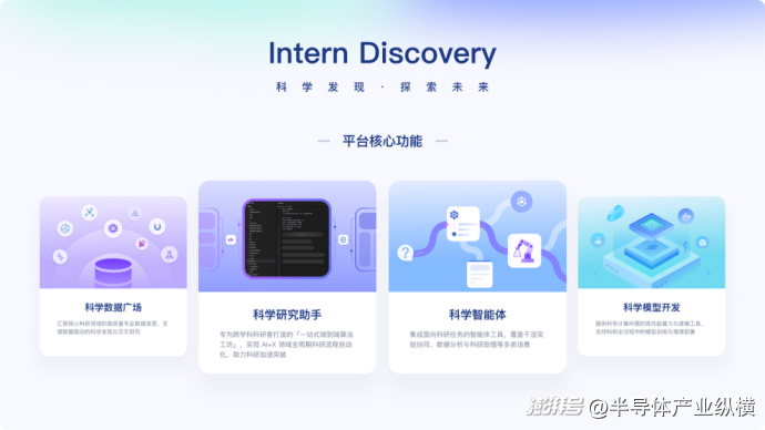 基于Intern-S1及一系列创新成果,上海AI实验室打造了『书生』科学发现平台Intern-Discovery。平台整合了专业智能体、海量科研数据及实验设备,能为全球研究者提供从假设到验证的一站式科研支撑。Intern-Discovery搭载了200余个跨学科智能体,覆盖物理、化学、生物等六大领域,支持低代码开发,助力科研流程智能化。同时,平台中开设了“科学数据广场”,开放50家顶尖机构的200余个PB级权威数据集,有效打破数据孤岛瓶颈,实现了高效建模分析。通过科学智能上下文协议(SCP),平台可连接百余种实验设备,支持远程协同实验与实时数据分析,显著提升科研效率。目前平台已开放全球试用申请,未来将持续扩展学科覆盖与资源规模,加速科学发现向规模化创新迈进。
