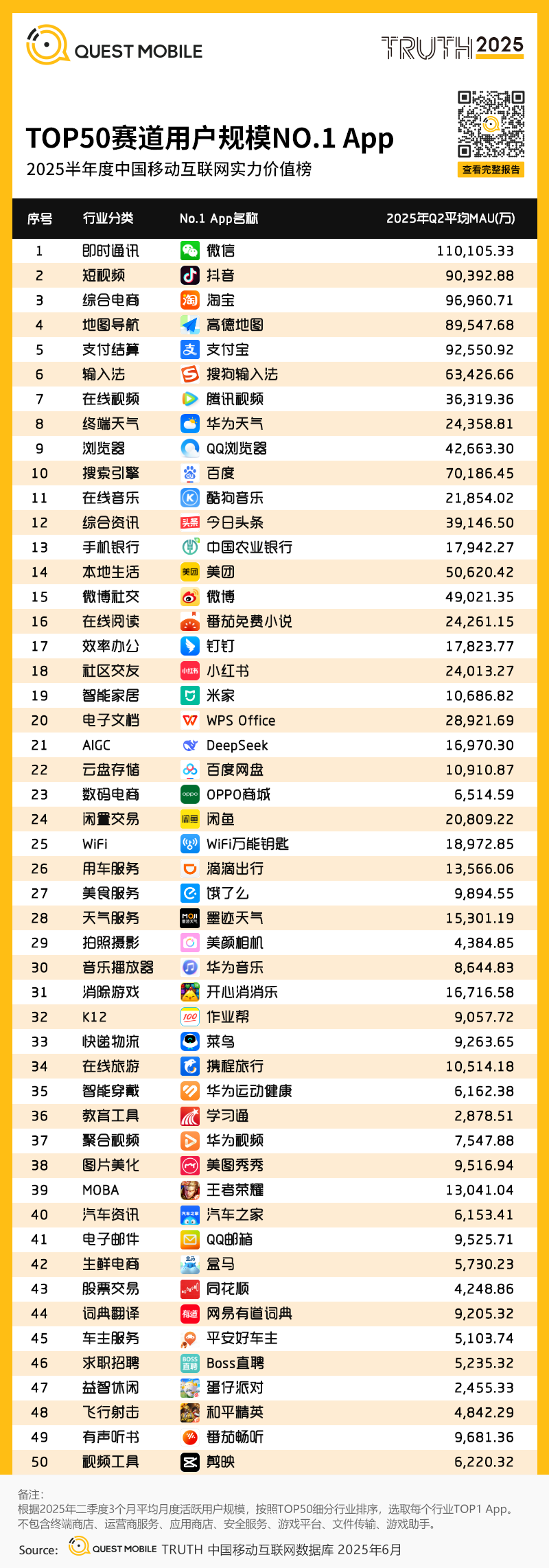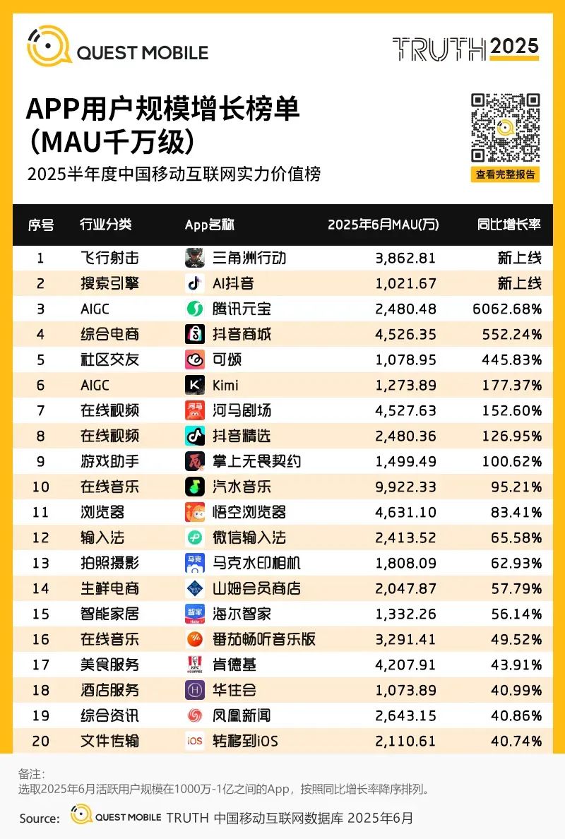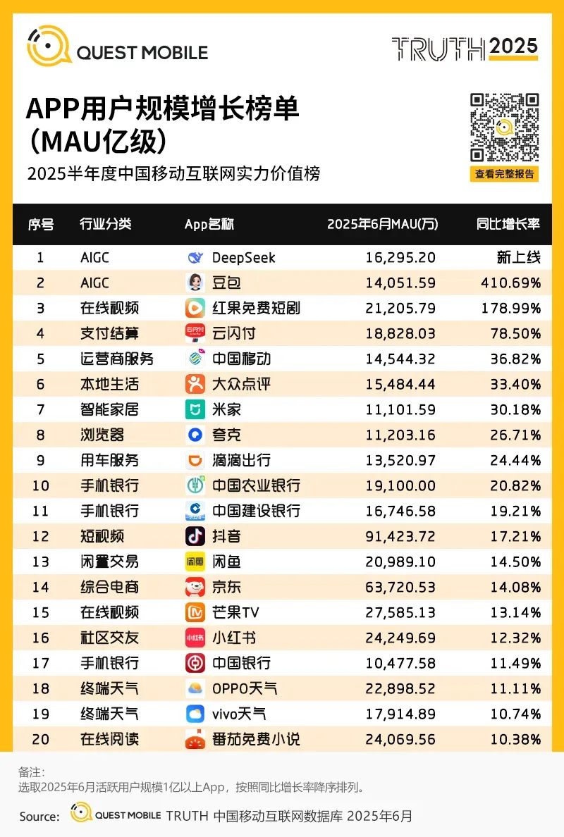 QuestMobile数据显示,截止到2025年6月,全网月活跃用户规模已经达到12.67亿,同比增长了2.5%;用户人均单日使用时长及次数分别为7.97小时、117.9次,同比提升了7.8%、2.6%;并且过去半年,互联网影响力深度参与到了社会生活的方方面面,包括文旅热点、KOL出圈等等,带动了各平台广告营销链路的全面升级。