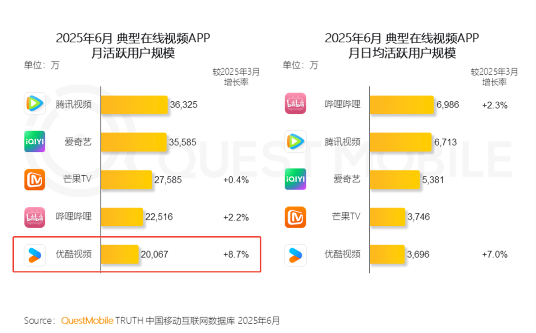 其中,APP渠道类别下,红果免费短剧的用户规模同比增长率高达179.0%,月活达2.12亿,正式超过了优酷视频的月活用户(2.006亿),与哔哩哔哩的月活用户相差仅1300多万;河马剧场同比增长152.6%,月活达4528万。