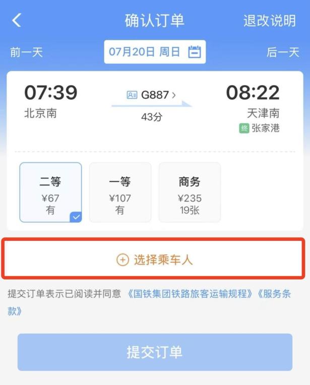 03完成乘车人信息添加后,选定车次进入预订页面,勾选已添加的成人及儿童信息,支付后即可完成购票。
