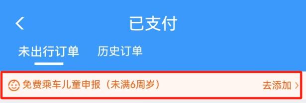02点击【免费乘车儿童申报】添加免费乘车儿童即可。