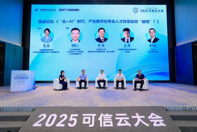 7月22日,由中国通信标准化协会主办,中国信息通信研究院(简称“中国信通院”)承办的“2025可信云大会”在京召开。大会特设圆桌论坛以“云+AI”时代,产业数字化专业人才如何“破局”为题,汇聚产学研专家,聚焦新时期产业数字化专业人才培养的“底层逻辑”,共寻破解之道。