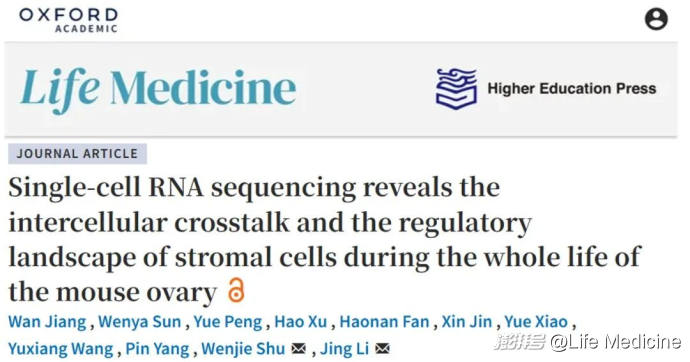 Wan Jiang, Wenya Sun, Yue Peng, Hao Xu, Haonan Fan, Xin Jin, Yue Xiao, Yuxiang Wang, Pin Yang, Wenjie Shu, Jing Li, Single-cell RNA sequencing reveals the intercellular crosstalk and the regulatory landscape of stromal cells during the whole life of the mouse ovary, Life Medicine, Volume 3, Issue 6, December 2024, lnae041, https://doi.org/10.1093/lifemedi/lnae041