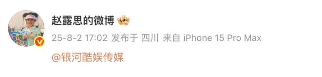 8月2日,赵露思发布微博@银河酷娱传媒,相关话题冲上热搜。