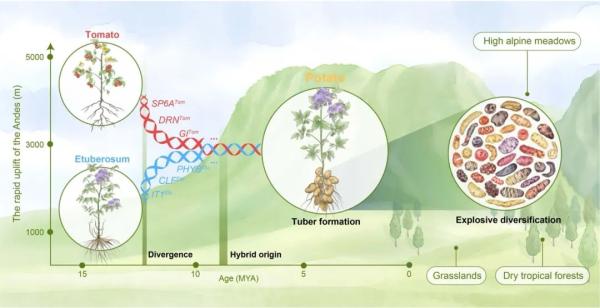 据中国农业科学院农业基因组研究所网站消息,没有人能想到,约900万年前,一场远古的“基因联姻”会缔造出如今的全球第三大主粮作物——马铃薯,更让人意想不到的是,这场“联姻”不仅创造了马铃薯这个新物种,更催生了新器官——薯块的产生,并由此引发了马铃薯物种爆发式的辐射分化。