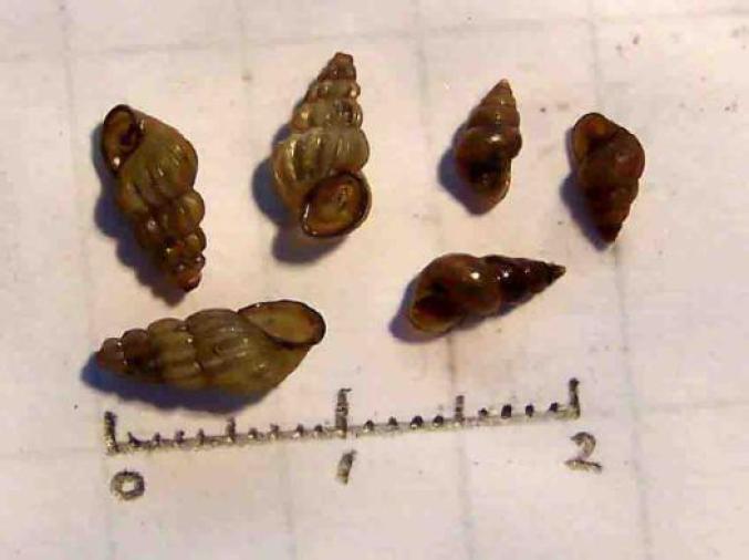 第二步:水里生存着血吸虫传播的中间宿主——钉螺,继而产生能够感染人的尾蚴。