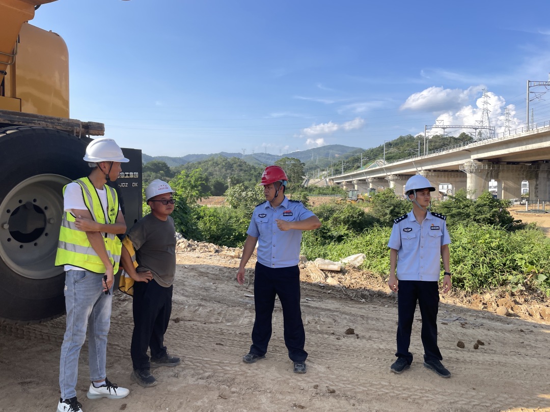 新兴县站派出所则聚焦广湛高铁新兴南站段高空作业、电气安全、防护网设置等关键点,建立隐患清单销号制度,确定线路风险点位置,确保线路安全可控。阳春站派出所就广湛高铁阳春东站段易发的盗窃施工设施设备、劳务纠纷、极端天气施工安全等方面,积极开展普法宣传教育活动,进一步提高施工人员的法律意识和安全防范意识,有效减少了各类矛盾纠纷和违法犯罪行为的发生,为广湛高铁建设营造了良好的治安环境。