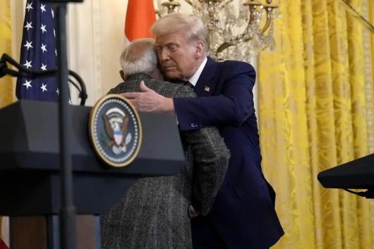 资料图 特朗普拥抱莫迪 AP林民旺指出,现阶段对于印度来说,又是在玩左右逢源外交的一部分,通过跟中国改善关系、更加积极参加上合活动,来为与美西方的矛盾化解提供杠杆。