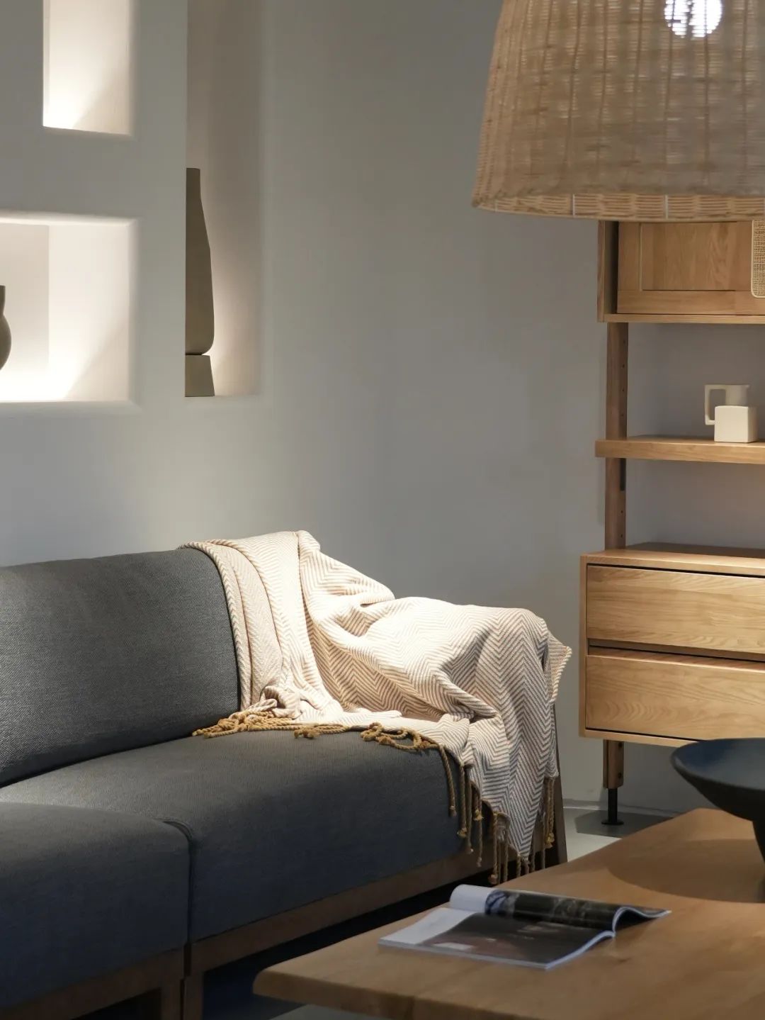 一进门立刻有种空旷感,裸露的砖墙与木头元素,勾勒出硬朗的工业风。不过在店的深处,藏着一摊柔软的绿植。