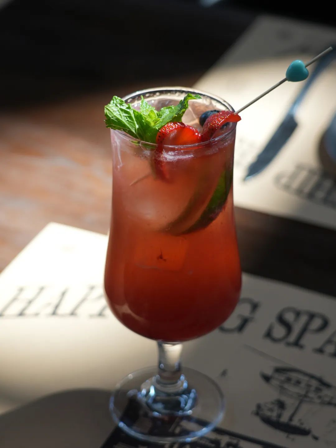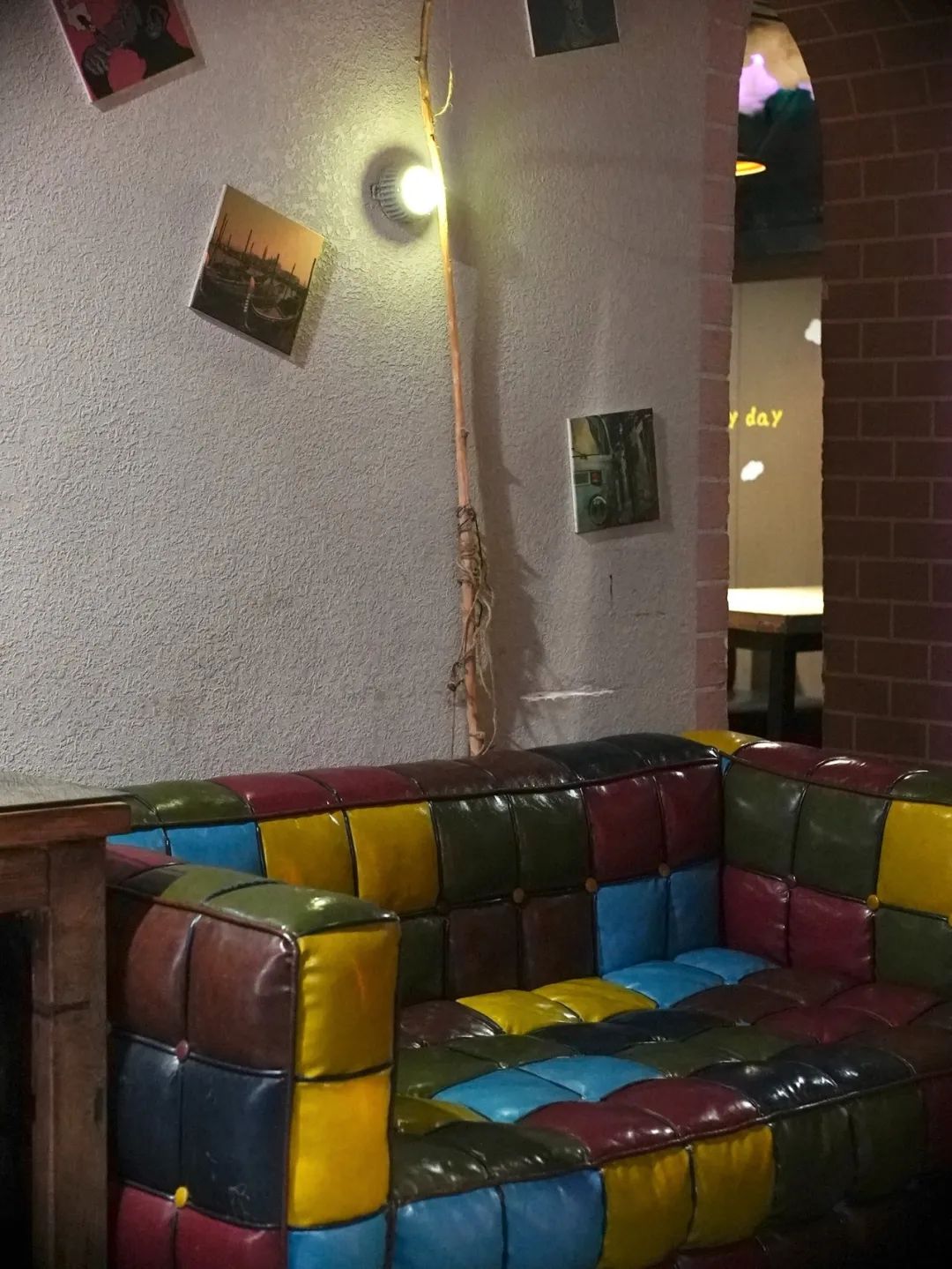 老板推荐了名为“西湖水”的特调酒。威士忌托底,蓝橙利口酒泛出盈盈色泽,加了伏特加。具体什么味道?只是记得酒味浓烈,以我的酒量,两口下去眼前有些发飘。