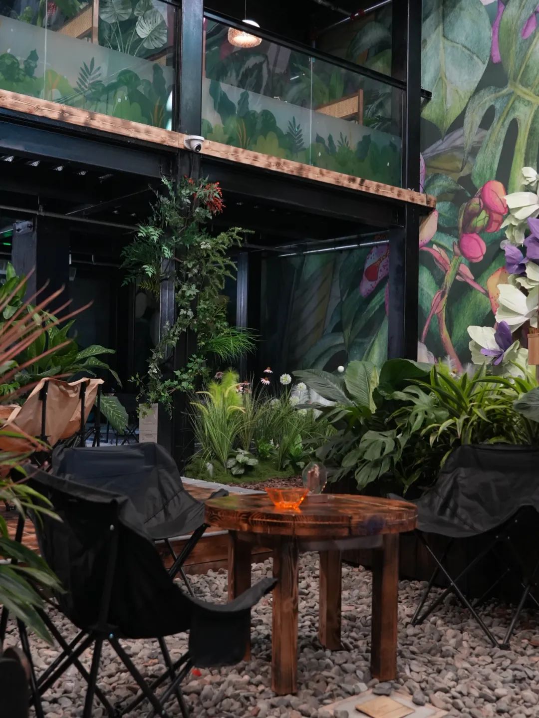 踏进这片“热带丛林”,头顶藤蔓弯弯绕绕垂下来,绿意将人轻轻拢住,适合围炉煮茶。