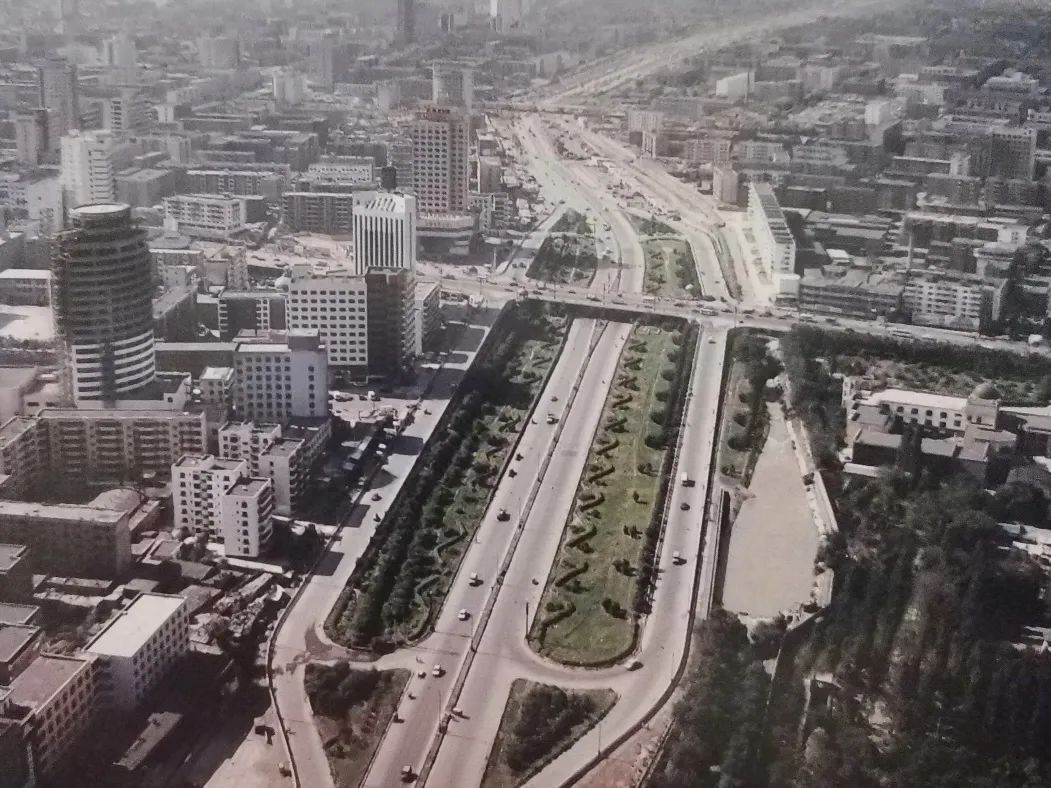1965 年,乌鲁木齐人用铁锨、爬犁,硬是在这条干涸的河床上铺出土路。学生们捡鹅卵石,家家户户义务植树,据说,连酸菜缸的压缸石都被贡献出来垫路基。