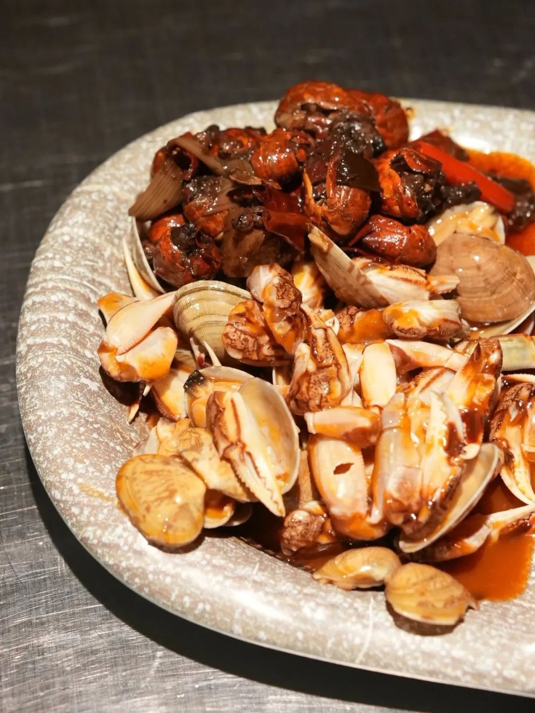 生腌蛤蜊得单独夸,处理得极干净,没一丝沙子,腌得酸辣汁,又透着一丝甜。若是有想吃的食材,可以提前一天跟老板预约~