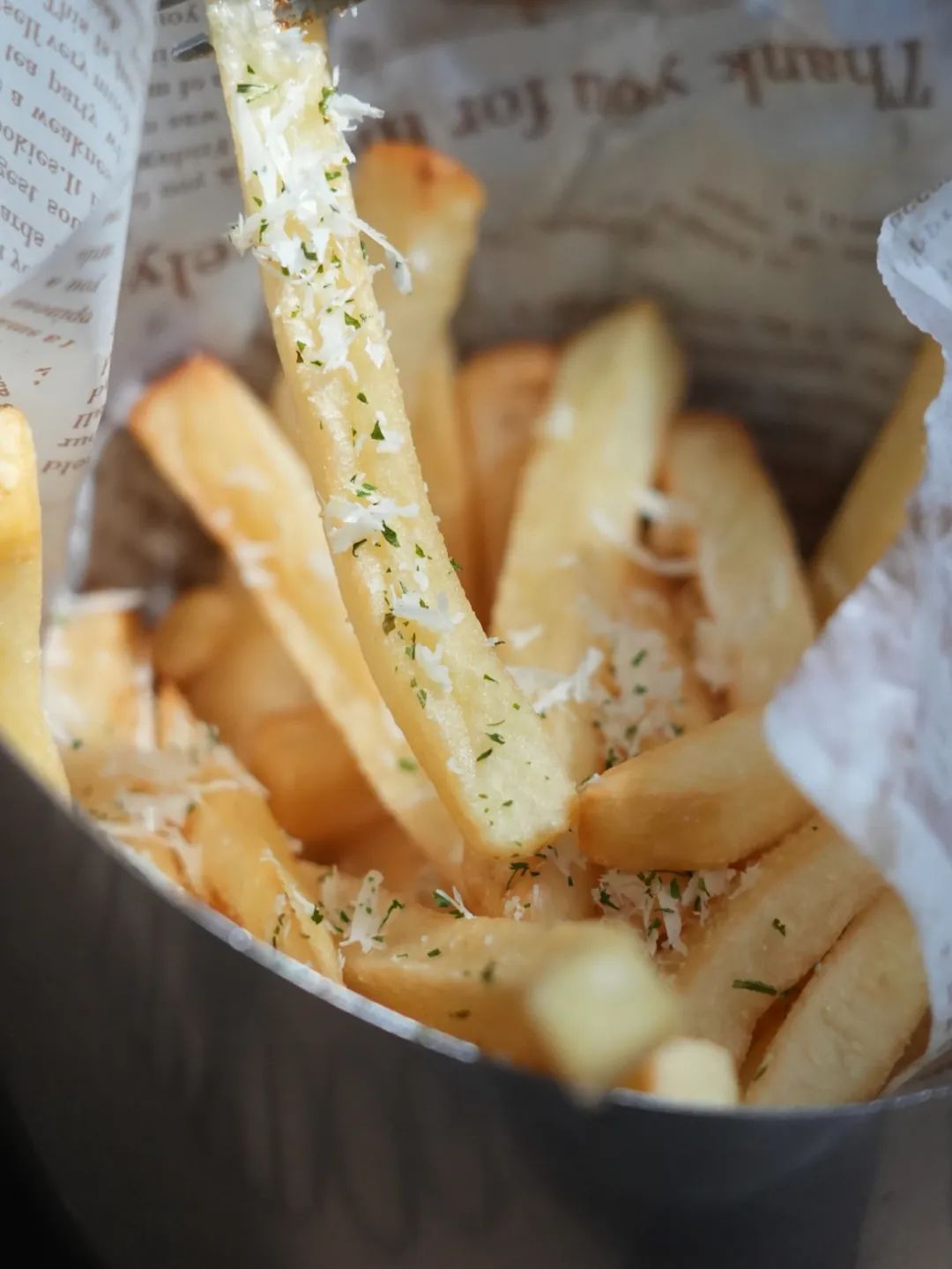 浓郁的番茄意面,味道不错,但炸薯条更令我惊喜。一定要吃刚出锅的,够酥脆,顶上还撒了欧芹碎和芝士碎。