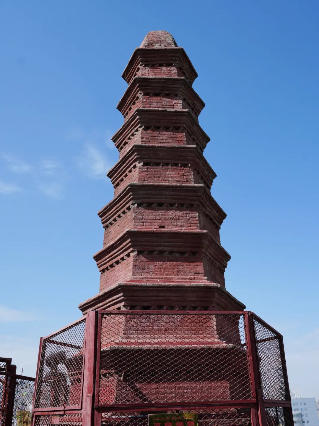 沿石阶登上山顶,红山塔便矗立眼前。这座 10.5 米高的实心砖塔,九层六角的结构历经风霜分毫未损。