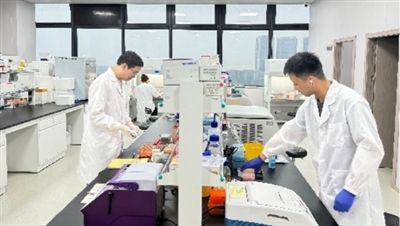 位于海归小镇·传化科技城的一木禾(杭州)生物科技有限公司实验室,工作人员正在进行试验。