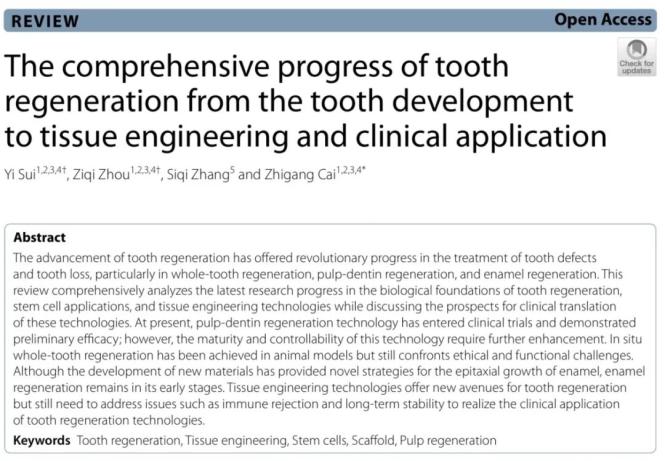 【前沿进展】Cell Regen | 牙齿再生:从发育到组织工程与临床应用的全面进展