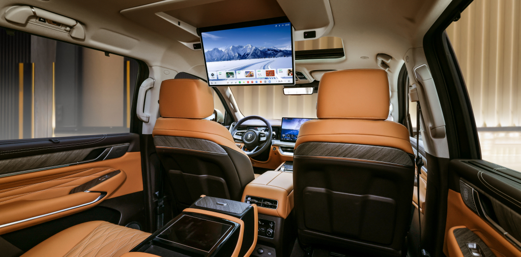 全新坦克500智享版让越野车也有了“冰箱彩电大沙发”的舒享标准:前排中央扶手下内藏5.4L车载冰箱;全车6屏无缝衔接,二排吸顶屏支持6种操控方式;全席位采用8层材质亲肤NAPPA真皮座椅,配备通风、加热与8种按摩模式。