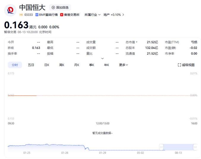8月12日晚,中国恒大发布公告称,公司将被取消上市地位。曾经的“宇宙房企”股价停留在0.163港元。