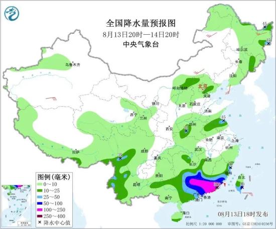 广东中东部和北部、福建东部和南部、江西南部、湖南南部、广西东北部、台湾岛南部等地有大到暴雨,部分地区大暴雨,其中,广东东部、福建东南部局地有特大暴雨(250~300毫米)。此外,黑龙江东部、内蒙古中部偏南地区、河北北部、天津、安徽北部、江苏北部、河南西南部、川西高原南部、云南中西部等地的部分地区有中到大雨。内蒙古中东部、黑龙江东北部、辽东半岛、广东中东部、福建南部等地有4~6级风,其中,广东东南部沿海、福建东南部等地的部分地区有8~9级风。