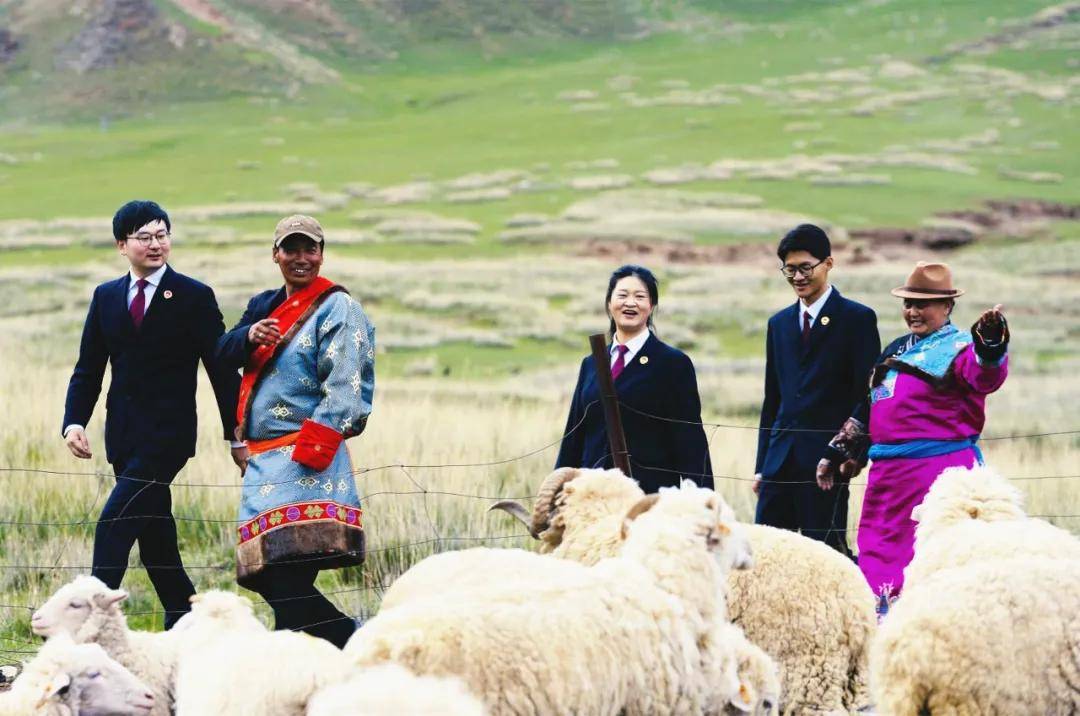 2025年6月,浙江省湖州市检察院援青干部王迈(左一)与青海省乌兰县检察院干警一起走访牧民。(段琳瑛摄)