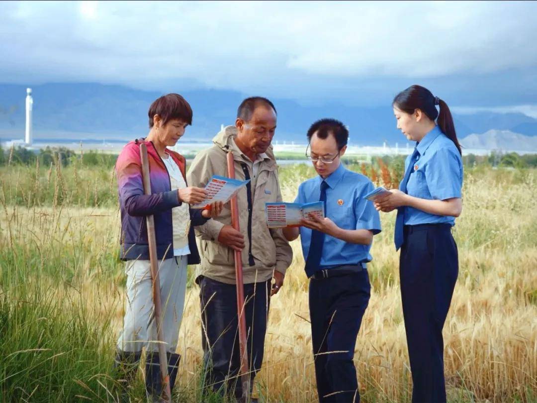 2024年6月,浙江省杭州市上城区检察院援青干部李昀昊(右二)与青海省德令哈市检察院干警开展法治宣传活动。(张立军摄)