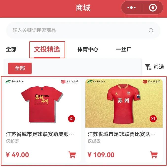 第二步:“文投精选”或“体育中心”栏目,挑选心仪的助威装备进行购买