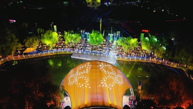 本次活动由浙江省水利厅主办、天台县人民政府承办。在因水而兴的塔后村,村民、游客以及来自“Z视介”客户端、浙江新闻频道微信视频号和微博、“浙江水利”微信视频号、“和合天台”客户端的网友们,共同见证一场与幸福河湖的邂逅,感受了一次生态与发展的共鸣。“剪一段时光缓缓流淌,流进了月色中微微荡漾,弹一首小荷淡淡的香,美丽的琴音就落在我身旁……”夜幕降临,水上莲花形状的舞台上,歌曲《荷塘月色》缓缓响起,水中荷花灯星星点点,观众们绕水而坐,跟着音乐轻轻哼唱,如梦似幻。