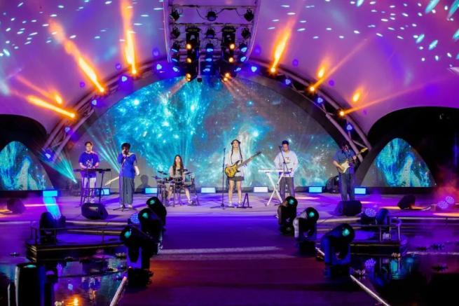 水上莲花舞台响起,