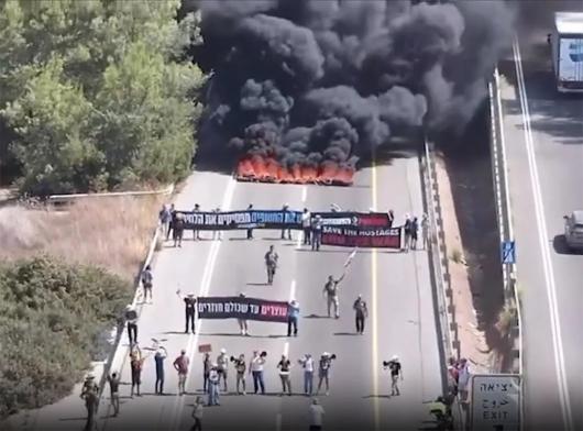 抗议者封锁了连接特拉维夫和耶路撒冷的1号公路。 视频截图