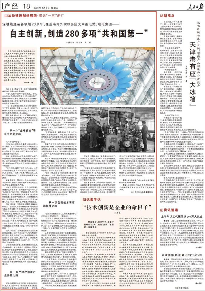 铸就大国重器,输出“中国动力”。在哈电集团等企业的努力下,中国能源装备正昂首前行,阔步走向世界舞台的中央。(人民日报记者 刘志强、方圆,部分图片为编者所加)“技术创新是企业的命根子”