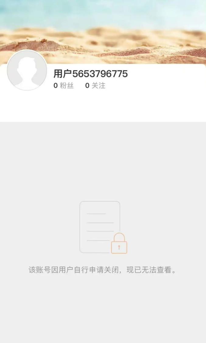 点进账号主页显示:“该账号因用户自行申请关闭,现已无法查看。”