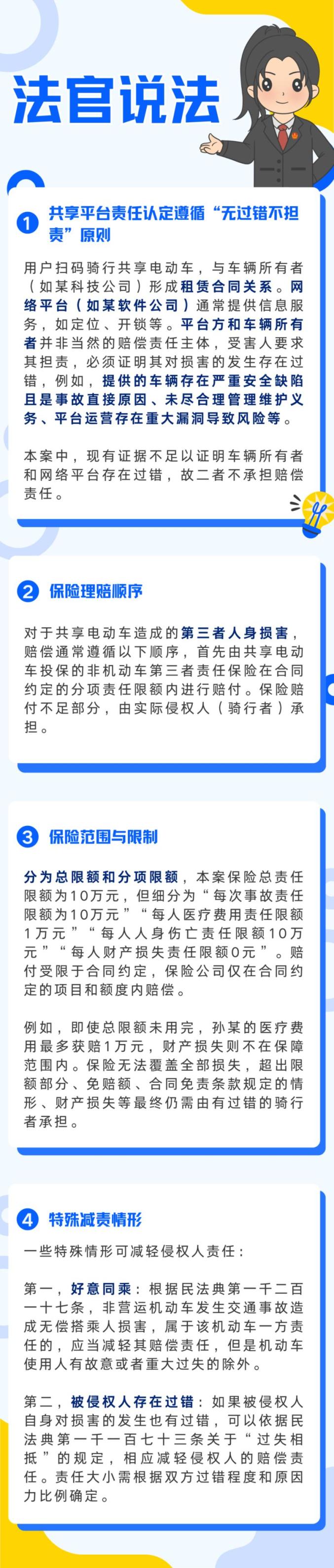 法院审理认为,被告某软件公司系共享电动车网络平台的运营者、被告某科技公司系共享电动车的所有人,关于原告要求被告某软件公司、某科技公司承担赔偿责任,根据《最高人民法院关于适用