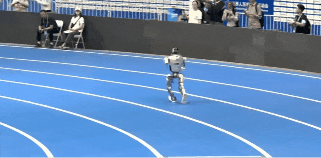 哨声吹响,田径赛道率先成为见证突破的舞台。比赛首日进行的1500米决赛,吸引了39支队伍的“钢铁选手”同场竞技。跑道上,机器人选手们姿态各异,有的双臂摆动,大步流星;有的不慌不忙,步伐优雅。