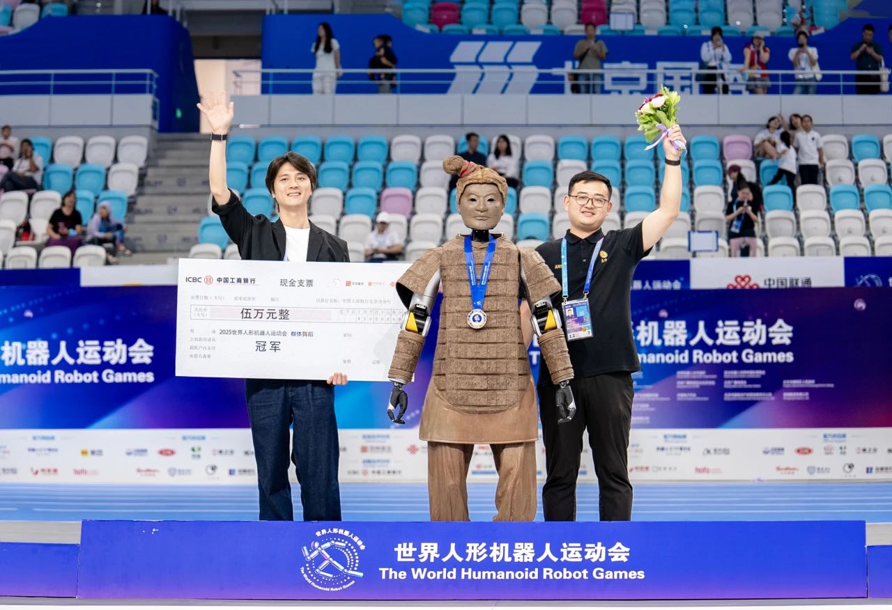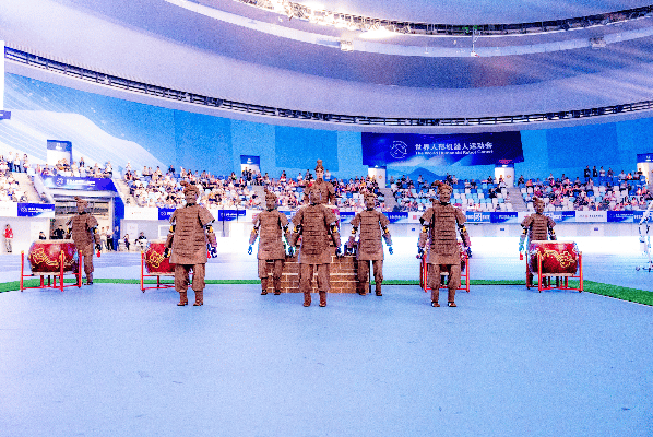 与此同时,高校队伍成为赛场创新的中坚力量。9台身披战甲的机器人鼓手与舞者,在一名人类舞者带领下同步挥臂、踏步、击鼓,引来观众“这简直就是复活的兵马俑军团”的惊叹。北京舞蹈学院与企业联合代表队,凭借这段2分16秒、融合科技与艺术之美的《秦俑魂》舞蹈,成功摘得群体舞蹈项目金牌。